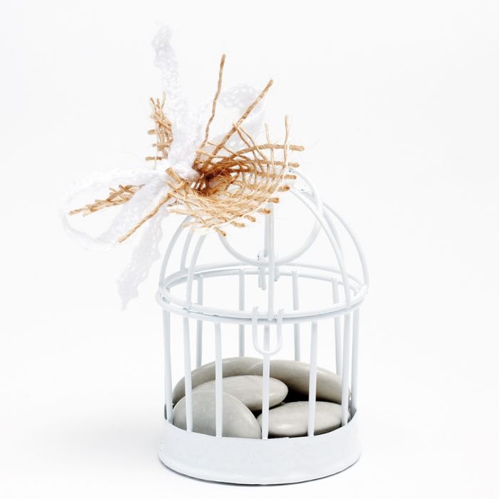 Cage en métal blanc - 7 cm. Vendu sans dragées et sans décoration (ruban, étiquette...)