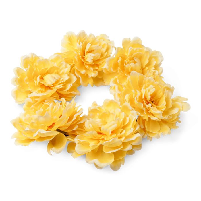 Vous pourrez vous servir de cette couronne de pivoines comme centre de table et y poser au milieu des bougies. Si vous choisissez cette couronne jaune, optez pour des bougies blanches, fuchsia ou corail.